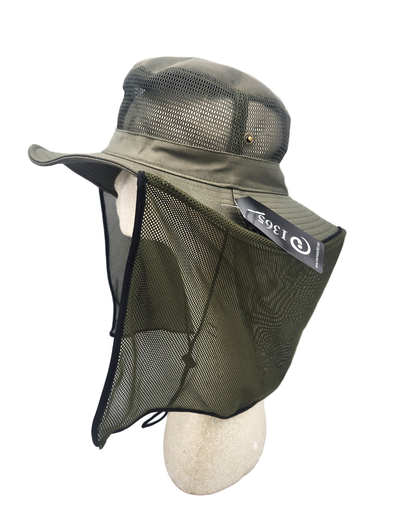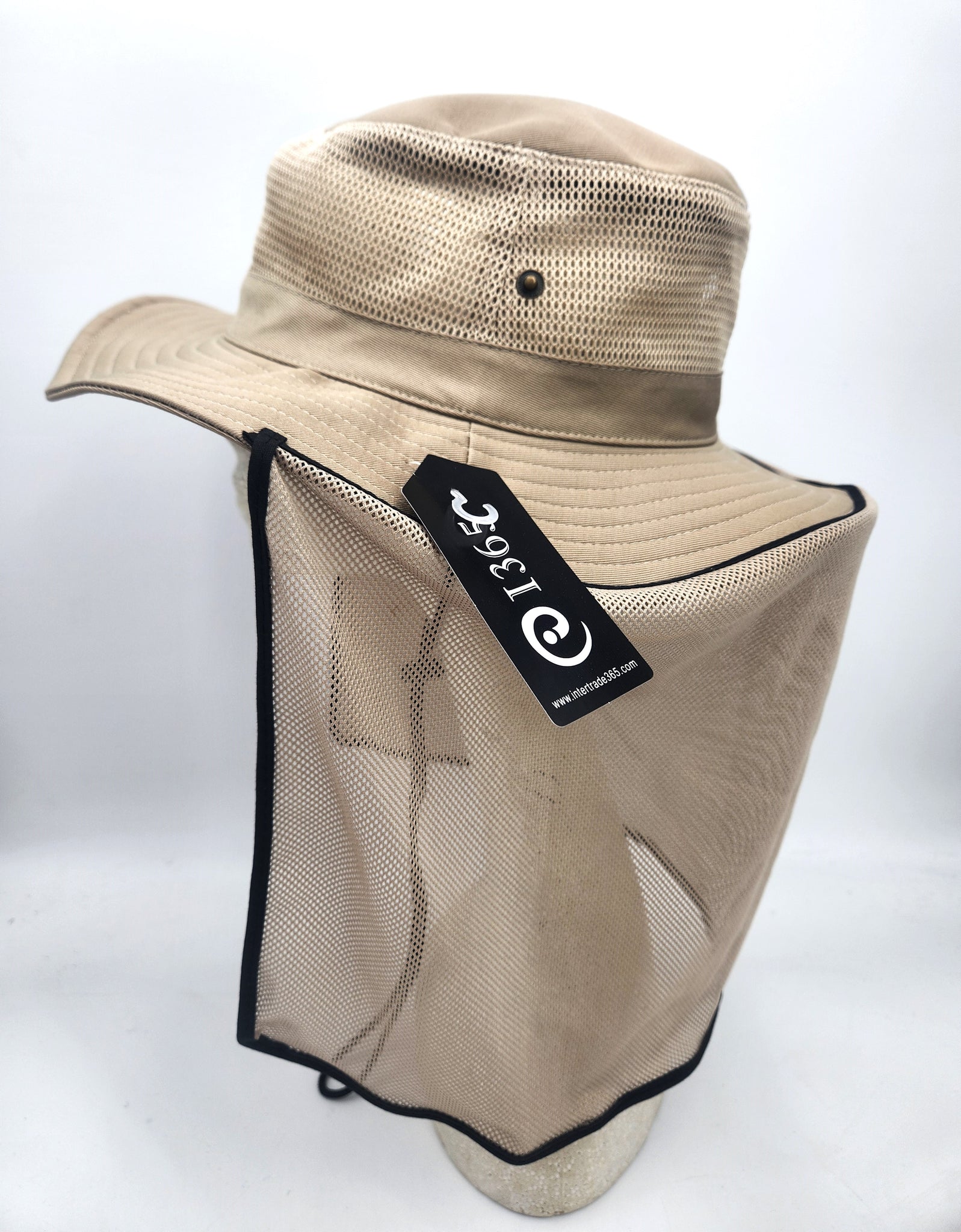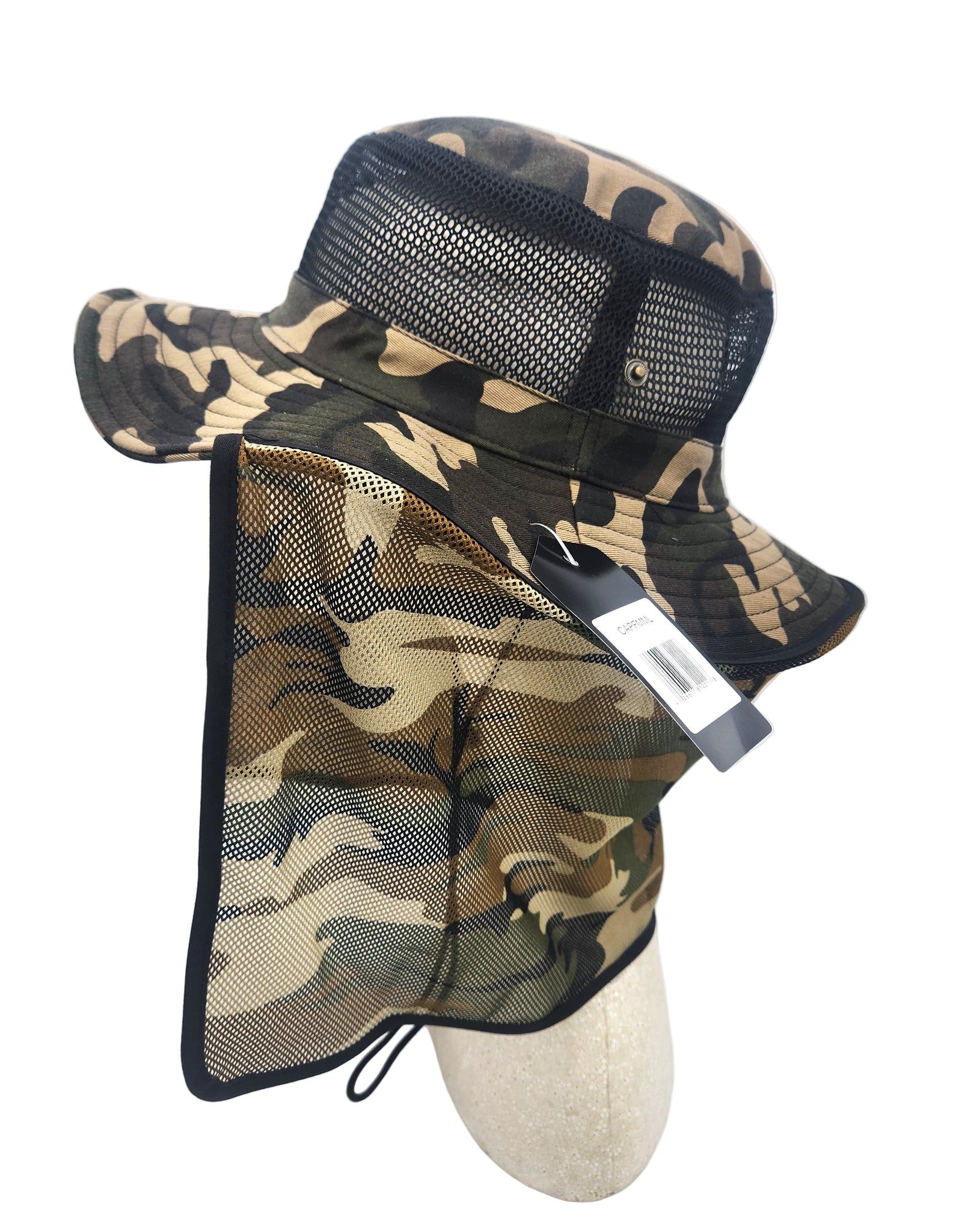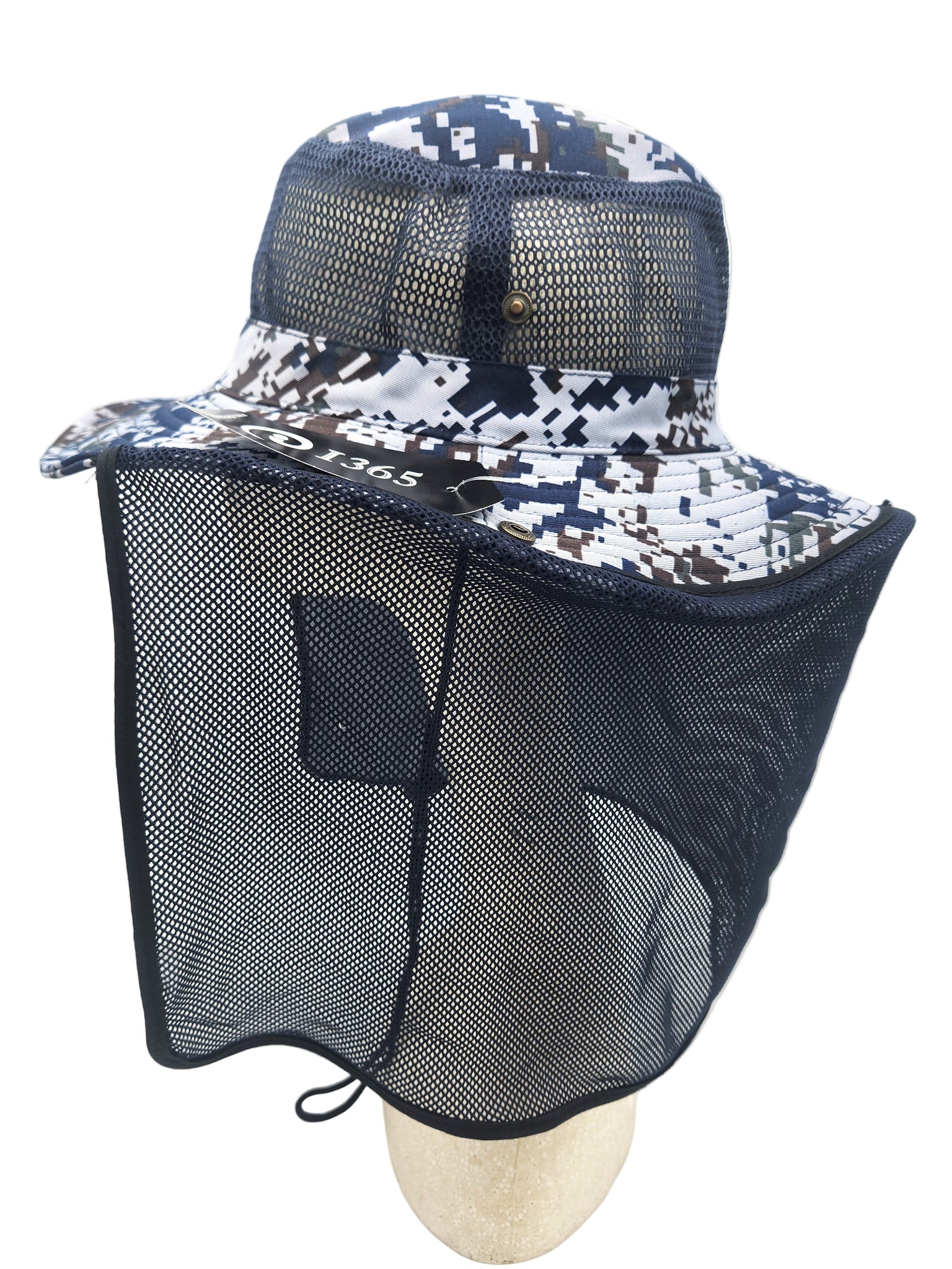 10% COTTON 90% POLYESTER Fisherman hat with Mesh back flap.